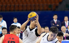 12月8日,全國殘?zhí)貖W會男子三人籃球銅牌賽,上海隊和浙江隊隊員在開賽前握手致意。